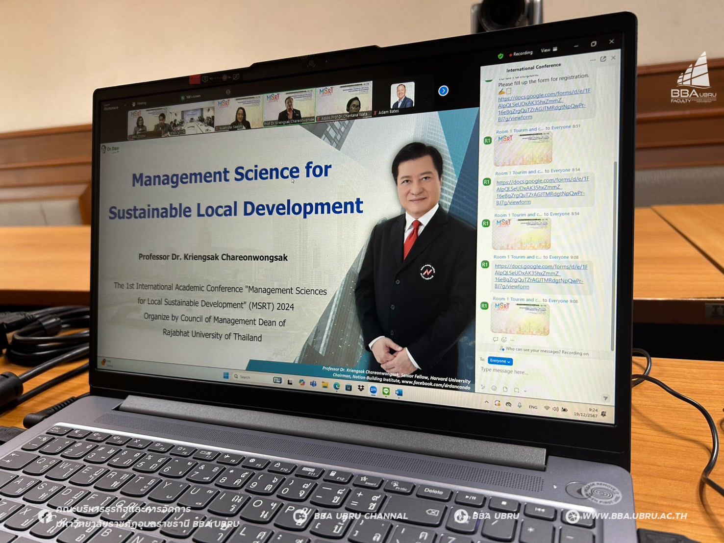 วันที่ 19 ธ.ค. 67 รองศาสตราจารย์ ดร.ประนอม คำผา คณบดีคณะบริหารธุรกิจและการจัดการ มอบหมายให้ รองศาสตราจารย์ ดร.ปิยกนิฏฐ์ โชติวนิช รองคณบดีฝ่ายบริหาร และ คณาจารย์ร่วมประชุมวิชาการระดับนานาชาติ ครั้งที่ 1 วิทยาการจัดการสู่การพัฒนาท้องถิ่นอย่างยั่งยืงยืน โดยสมาคมสภาคณบดีคณะวิทยาการจัดการ มหาวิทยาลัยราชภัฏแห่งประเทศไทย ออนไลน์ผ่านผระบบ zoom