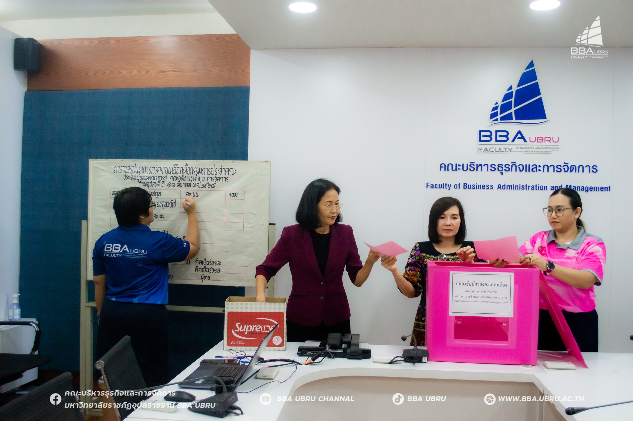 วันพฤหัสบดีที่ 13 มีนาคม 2568 เวลา 09.00 - 12.00 น. รองศาสตราจารย์ ดร.ประนอม คำผา คณบดีคณะบริหารธุรกิจและการจัดการ ประธานคณะกรรมการสรรหากรรมการประจำคณะ ประเภทผู้แทนคณาจารย์ พร้อมด้วยคณะกรรมการสรรหา ฯ ดำเนินการจัดการเลือกตั้งผู้สมควรดำรงตำแหน่งกรรมการประจำคณะ ประเภทผู้แทนคณจารย์ ณ ห้องประชุมคณะ ฯ อาคารเรียน 8 ชั้น 1 คณะบริหารธุรกิจและการจัดการ มหาวิทยาลัยราชภัฏอุบลราชธานี