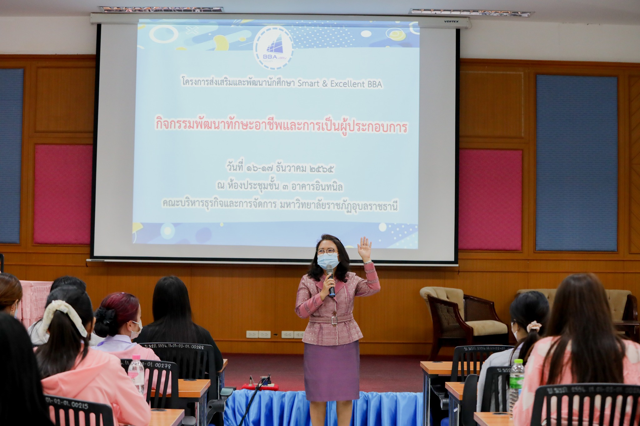 วันที่ 16 ธ.ค. 65 ผศ.ดร.หทัยรัตน์ ไชยสัตย์ คณบดีคณะบริหารธุรกิจและการจัดการ ประธานเปิดโครงการส่งเสริมและพัฒนานักศึกษา Smart & Excellent BBA กิจกรรมพัฒนาทักษะอาชีพและการเป็นผู้ประกอบการ โดยกิจกรรมจัดระหว่างวันที่ 16 – 17 ธ.ค. 65 ณ ห้องประชุมอินทนิล ชั้น 3 อาคารอินทนิล คณะบริหารธุรกิจและการจัดการ มหาวิทยาลัยราชภัฏอุบลราชธานี