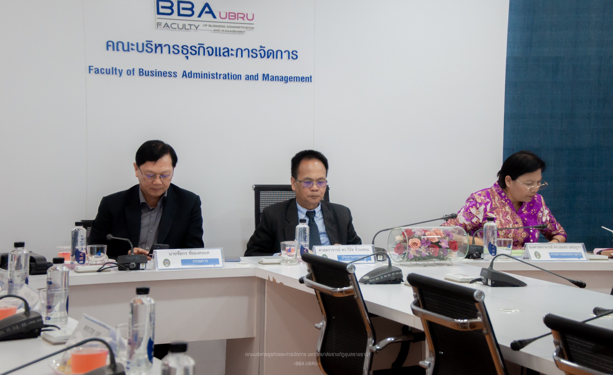วันที่ 22 พ.ย. 66 ผู้ช่วยศาสตราจารย์ ดร.หทัยรัตน์ ไชยสัตย์ พร้อมด้วยผู้บริหาร และบุคลากร คณะบริหารธุรกิจและการจัดการ มหาวิทยาลัยราชภัฏอุบลราชธานี ร่วมต้อนรับคณะกรรมการติดตาม ตรวจสอบและประเมินผลงานมหาวิทยาลัยราชภัฏอุบลราชธานี โดยมี ศาสตราจารย์ ดร.วิรัช จิ๋วแหยม ประธานกรรมการ, นายชัยกร ชัยมงคลยศ กรรมการ, รองศาสตราจารย์ ดร.เอมอร แสนภูวา กรรมการและเลขานุการ และผู้อำนวยการสำนักงานตรวจสอบภายใน ผู้ช่วยเลขานุการ ณ ห้องประชุมคณะฯ ชั้น 1 อาคารเรียน 8