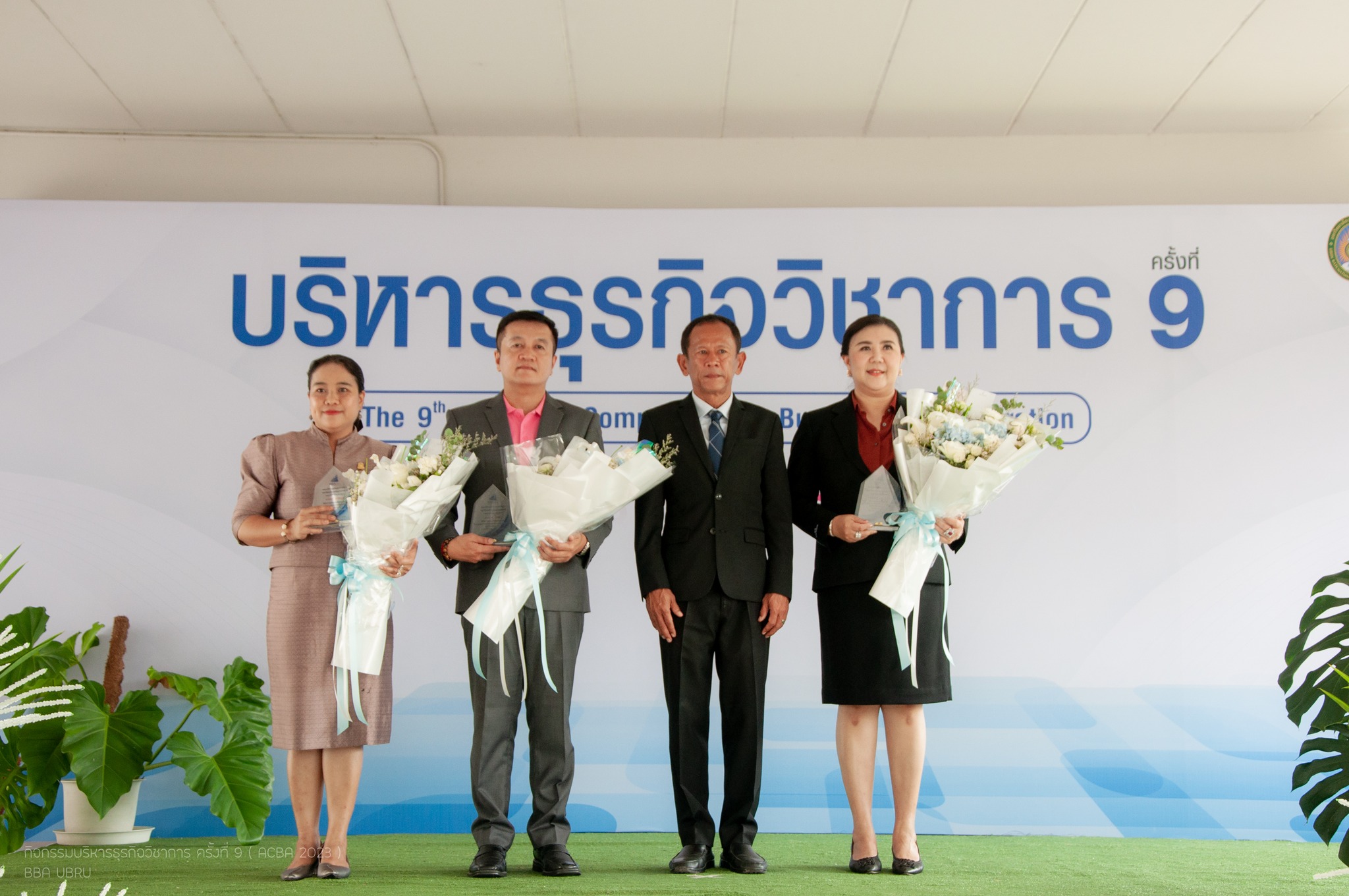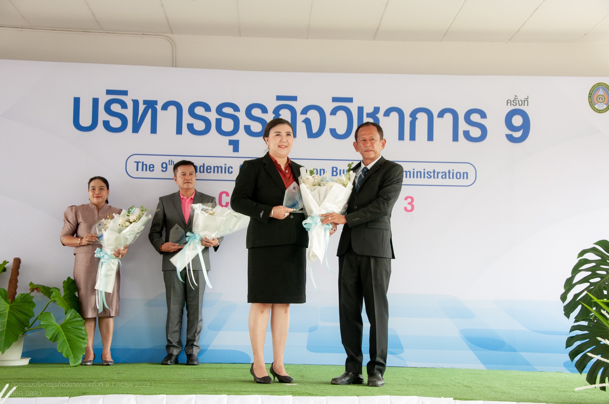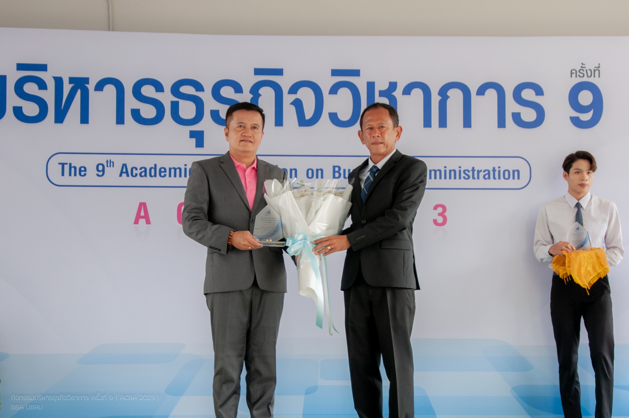 รองศาสตราจารย์ธรรมรักษ์ ละอองนวล รักษาราชการแทนอธิการบดี มหาวิทยาลัยราชภัฏอุบลราชธานี มอบรางวัลแก่ศิษย์เก่าดีเด่นของคณะ บริหารธุรกิจและการจัดการ 3 ท่าน ได้แก่