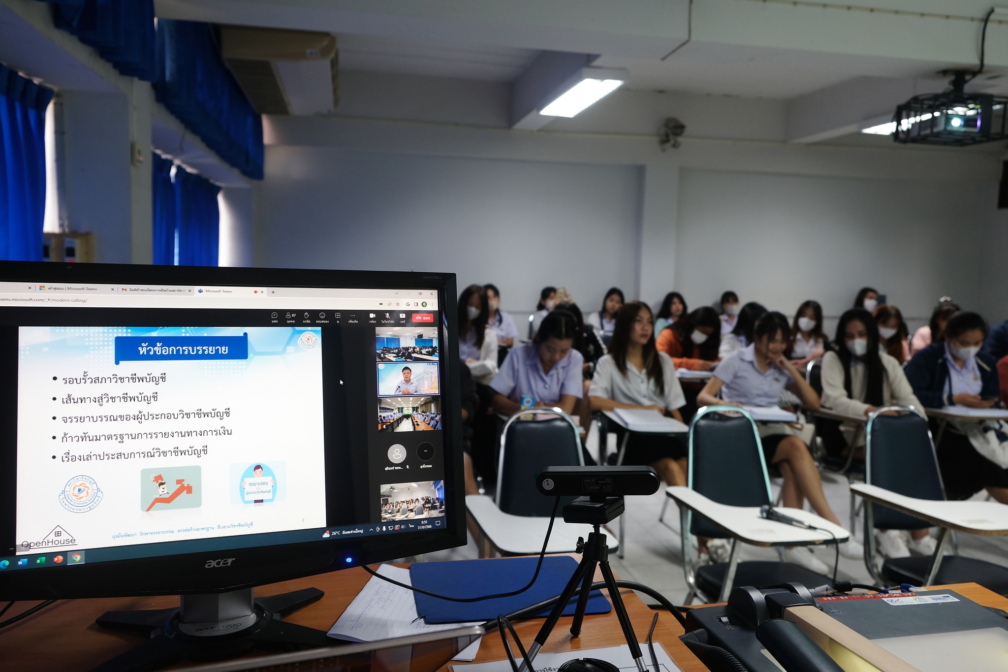 วันพฤหัสบดีที่ 31 สิงหาคม 2566 หลักสูตรบัญชีบัณฑิต ร่วมโครงการเปิดบ้านสภาวิชาชีพบัญชี (TFAC Open House) วิทยากรผู้บรรยาย คุณวีระเดช เตชะวรินทร์เลิศ ตําแหน่ง ผู้จัดการฝ่ายบริการ สมาชิกและกํากับดูแลและผู้ชํานาญการฝ่ายวิชาการด้านมาตรฐานการบัญชี บรรยายในหัวข้อ ดังนี้ (1) รอบรั้วสภาวิชาชีพบัญชี (2) เส้นทางสู่วิชาชีพบัญชี (3) จรรยาบรรณของผู้ประกอบวิชาชีพบัญชี (4) ก้าวทันมาตรฐานการรายงานทางการเงิน (5) เรื่องเล่าประสบการณ์วิชาชีพบัญชี ผ่านช่องทางออนไลน์โปรแกรม Microsoft teams
