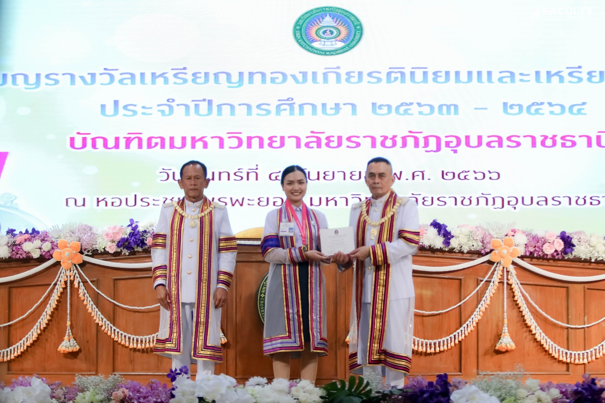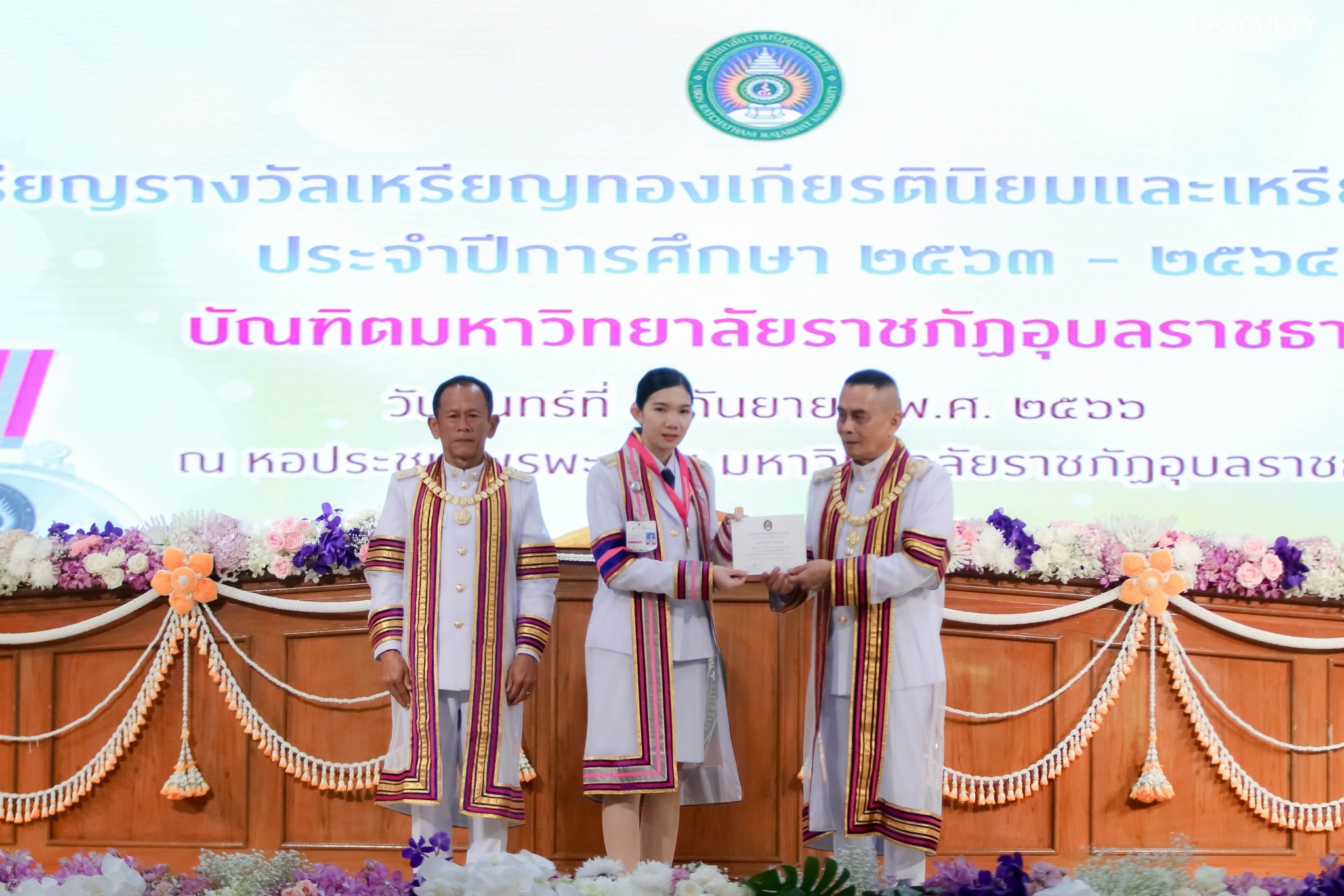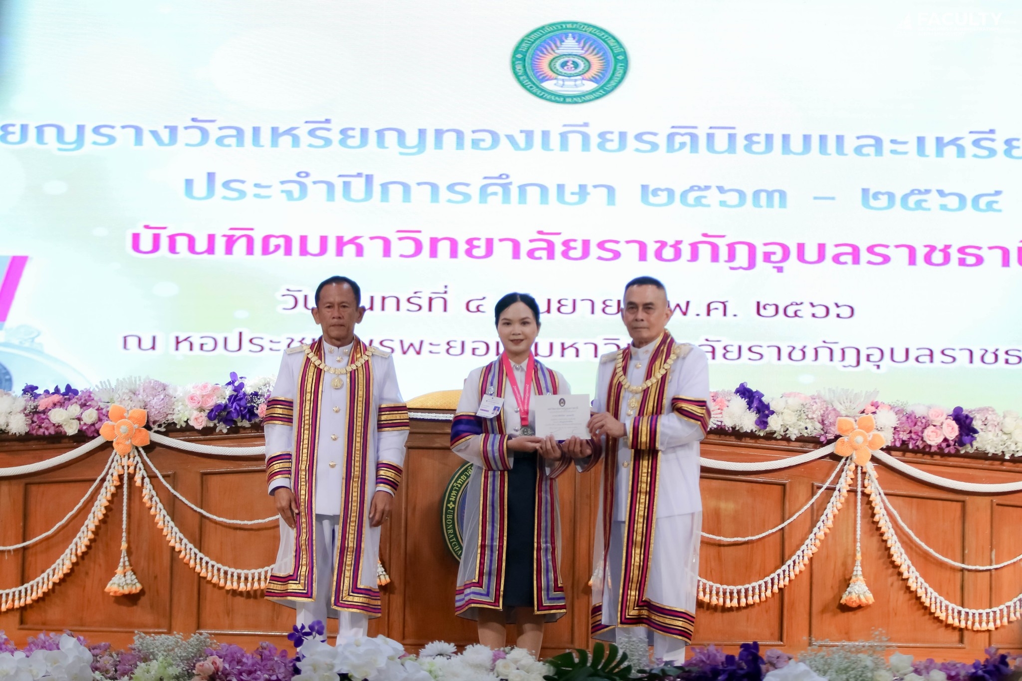 วันที่ 4 ก.ย. 66 พลเอก นิรุทธ เกตุสิริ นายกสภามหาวิทยาลัย พร้อมด้วย รศ.ธรรมรักษ์ ละอองนวล รักษาราชการแทนอธิการบดี มอบเหรียญรางวัล เหรียญทองเกียรตินิยม และเหรียญเงินเกียรตินิยมแก่บัณฑิตที่มีผลการเรียนคะแนนเฉลี่ยสูงสุดของแต่ละ ประจำปีการศึกษา ๒๕๖๓ – ๒๕๖๔ โดยบัณฑิตคณะบริหารธุรกิจและการจัดการ ได้แก่ ????ปริญญาบริหารธุรกิจบัณฑิต ????เหรียญทองเกียรตินิยม นางสาวธารีรัตน์ บุญเจริญ สาขาวิชาการบัญชี ????ปริญญาบัญชีบัณฑิต ????เหรียญทองเกียรตินิยม นางสาวศศิกาญณ์ ดวงสิน หลักสูตรบัญชีบัณฑิต ????เหรียญเงินเกียรตินิยม นางสาวทัศนีย์พร คุณสมบัติ หลักสูตรบัญชีบัณฑิต