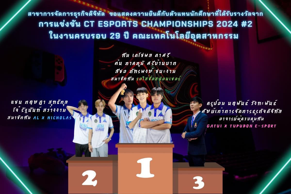สาขาการจัดการธุรกิจดิจิทัล ขอแสดงความยินดีกับ ตัวแทนนักศึกษาสาขาการจัดการธุรกิจดิจิทัล ที่ได้รับรางวัล จากการแข่งขัน CT Esports Championships 2024 #2 ในงานครบรอบ 29 ปี คณะเทคโนโลยีอุตสาหกรรม ม.ราชภัฏอุบล