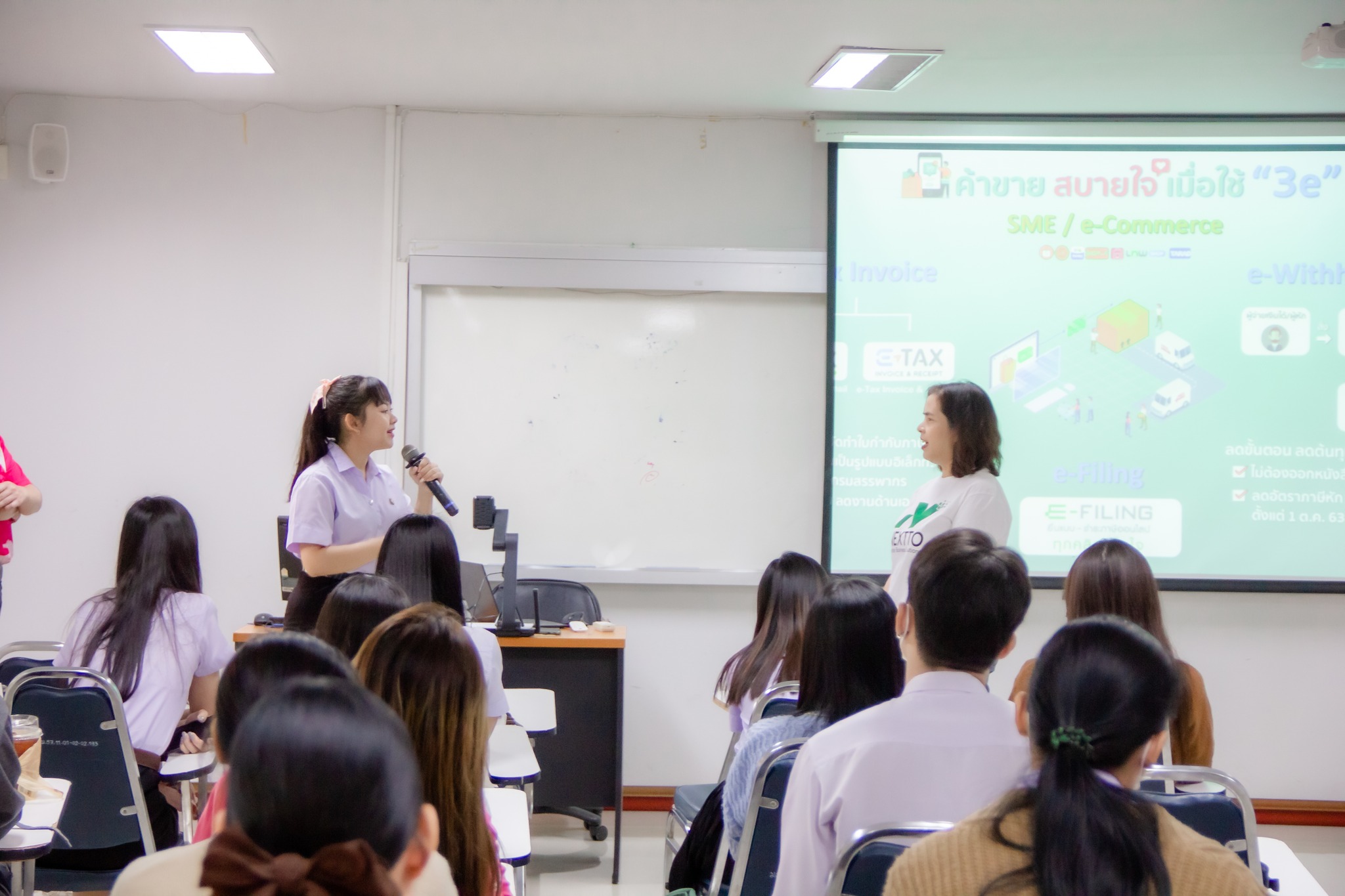 “รู้ทันภาษีกับนักบัญชียุค Digital” --------- วันที่ 20 ก.พ. 67 รศ.ดร.ประนอม คำผา คณบดีคณะบริหารธุรกิจและการจัดการ ประธานเปิดโครงการพัฒนาศักยภาพด้านการจัดการเรียนการสอนเพื่อพัฒนาทักษะการเรียนรู้ในศตวรรษที่ 21 กิจกรรมการอบรมเชิงปฏิบัติการ การเสริมประสบการณ์ด้านวิชาชีพบัญชีจากบุคคลภายนอก (BACC) รายวิชาการภาษีอากร 2 หัวข้อ “รู้ทันภาษีกับนักบัญชียุค Digital” วิทยากรโดย นางสาวจันจิรา สุมนัส (กรรมการบริษัท เน็กซ์ทู ซิสเท็ม จำกัด) และ นางสาวสงกรานต์ ยังน้อย (กรรมการบริษัท เน็กซ์ทู ซิสเท็ม จำกัด) ณ ห้องเรียน 15-308 อาคารเรียน 15 คณะบริหารธุรกิจและการจัดการ มหาวิทยาลัยราชภัฏอุบลราชธานี --------- #คณะบริหารธุรกิจและการจัดการ #มหาวิทยาลัยราชภัฏอุบลราชธานี