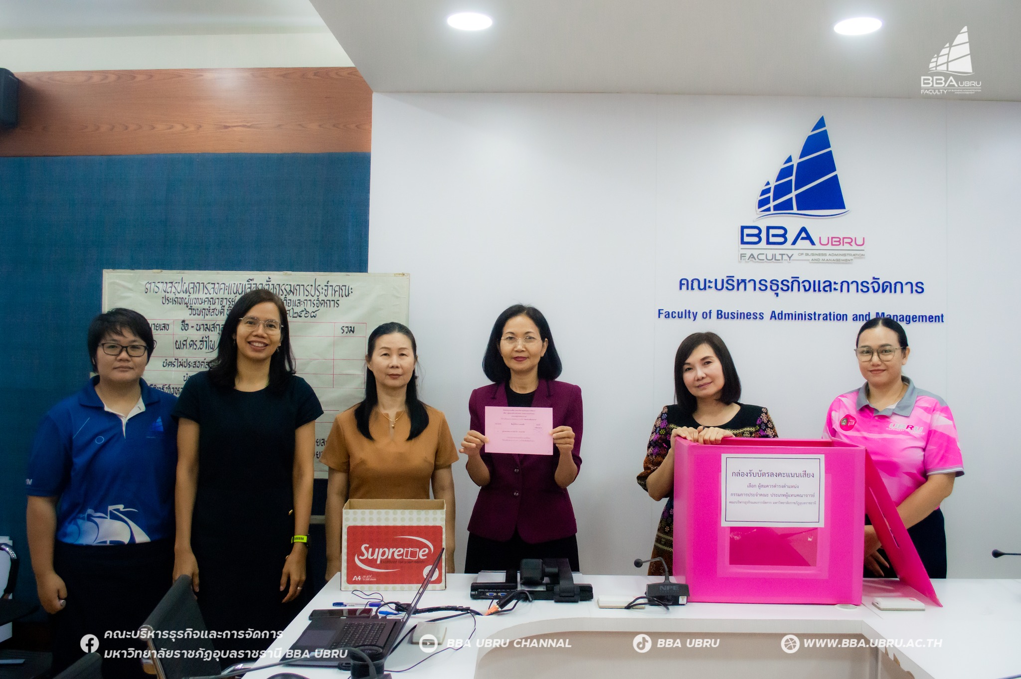 วันพฤหัสบดีที่ 13 มีนาคม 2568 เวลา 09.00 - 12.00 น. รองศาสตราจารย์ ดร.ประนอม คำผา คณบดีคณะบริหารธุรกิจและการจัดการ ประธานคณะกรรมการสรรหากรรมการประจำคณะ ประเภทผู้แทนคณาจารย์ พร้อมด้วยคณะกรรมการสรรหา ฯ ดำเนินการจัดการเลือกตั้งผู้สมควรดำรงตำแหน่งกรรมการประจำคณะ ประเภทผู้แทนคณจารย์ ณ ห้องประชุมคณะ ฯ อาคารเรียน 8 ชั้น 1 คณะบริหารธุรกิจและการจัดการ มหาวิทยาลัยราชภัฏอุบลราชธานี